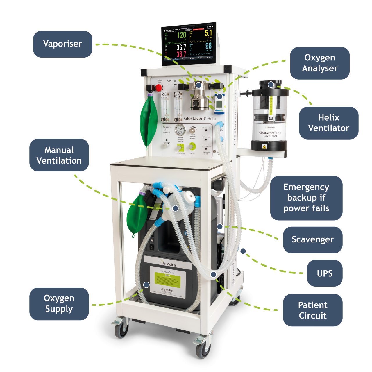 Basé sur le célèbre Glostavent, le Glostavent® Helix est un système anesthésique intégrant le nouveau ventilateur pneumatique Helix...